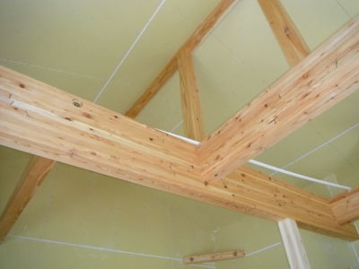 桁・梁には県産唐松、柱に県産杉を使用し、木の温もりが感じられる仕上がりになりそうです。