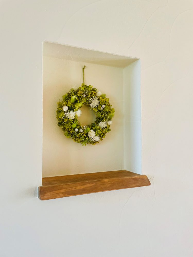 飾り棚にも県産木材の耳付杉板が使われています。