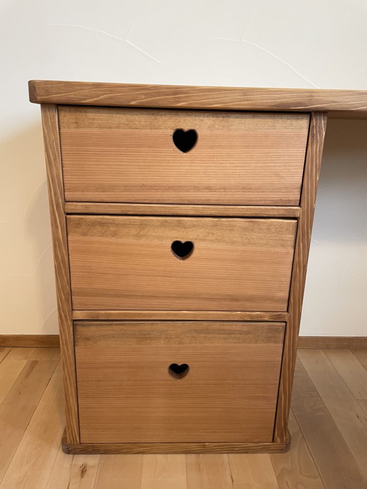 収納棚の引手もハートの形状に加工されております。