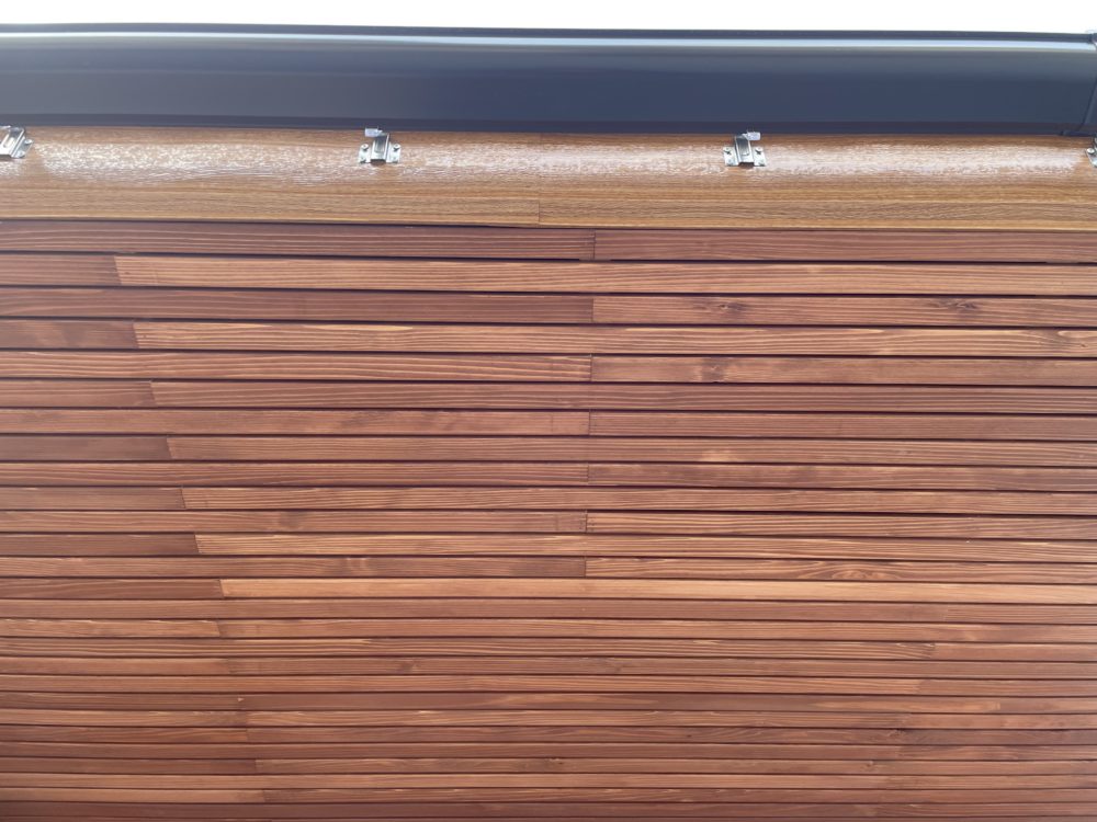 外壁の軒天井にも杉の胴縁材が使われています。